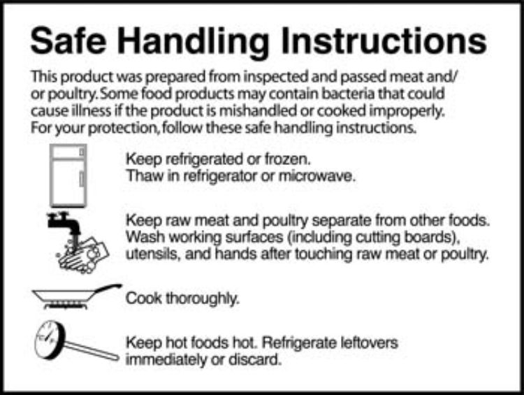 Safe handling instructions are placed on raw meat and poultry packages and indicate that proper handling and cooking are key steps when consuming meat.
