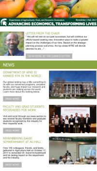 “I’m really excited about the future of our Department,” said Myers of AFRE’s outlook. “We’ve hired some incredibly motivated and talented young faculty members who are on the cutting-edge of their fields.”