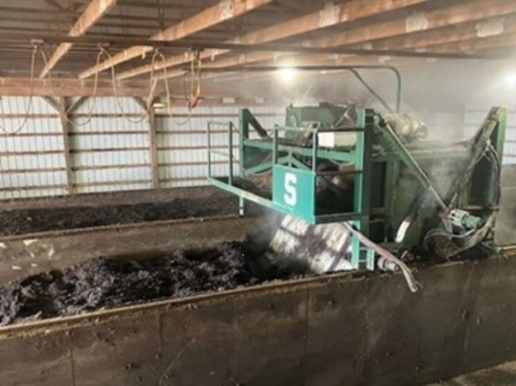 The South Campus Compost Facility (SCCF) is now under the operational management of the South Campus Anaerobic Digester (SCAD) team and has begun producing high quality compost. The SCCF is located just to the south of the Dairy Cattle Teaching and Research Center. The facility is comprised of a stacking shed for the storage of raw manures and feedstocks, a 3-bay in-vessel composting area, lean-to storage area for curing compost, and an outdoor storage pad for compost ready for sale. SCCF handles a wide variety of manures and feedstocks from the South Campus Animal Farms including the solids out of the anaerobic digester, beef cattle manure, waste feed, horse shavings, and bedding from the livestock pavilion. SCCF operators blend this material into windrows based upon an ideal carbon to nitrogen ratio and then treat the material using accepted best practices. Compost is maintained at a minimum of 131 degrees Fahrenheit for 15 days and turned 5 times. SCCF currently has a variety of materials for sale typically sold in 50 yard minimums.