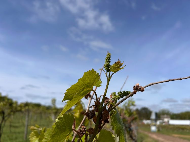Grapes are at close to 12 inches of growth with clusters separating and elongating. With the cool weather, we are still more than a week before bloom. Some slower hybrids and early vinifera are around 6 inches of growth.