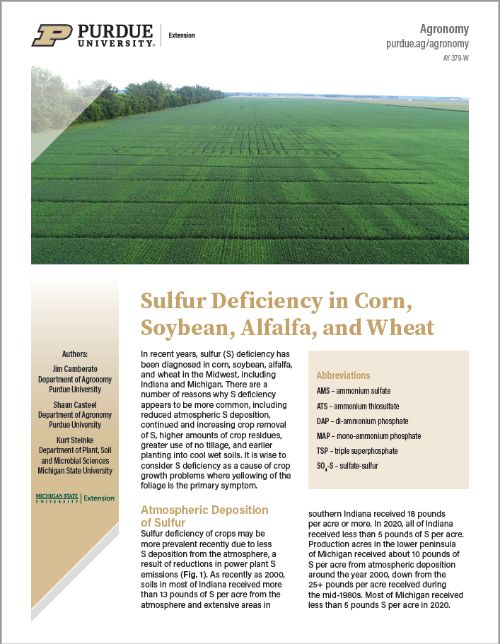 Sulfur Deficiency in Corn, Soybean, Wheat, and Alfalfa