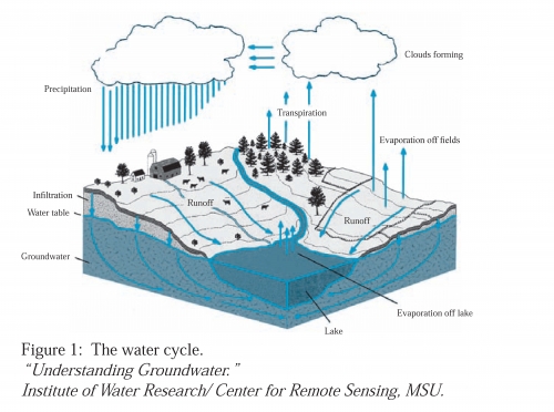 Simply, it is not possible to separate the two water sources because they feed into each other. At any point, our actions at the local level can have multiple impacts on water as it moves through the water cycle. Identifying practices that may pose risks to Michigan’s water resources will allow individuals to help protect Michigan’s surface and groundwater resources and ensure their availability in the future.
