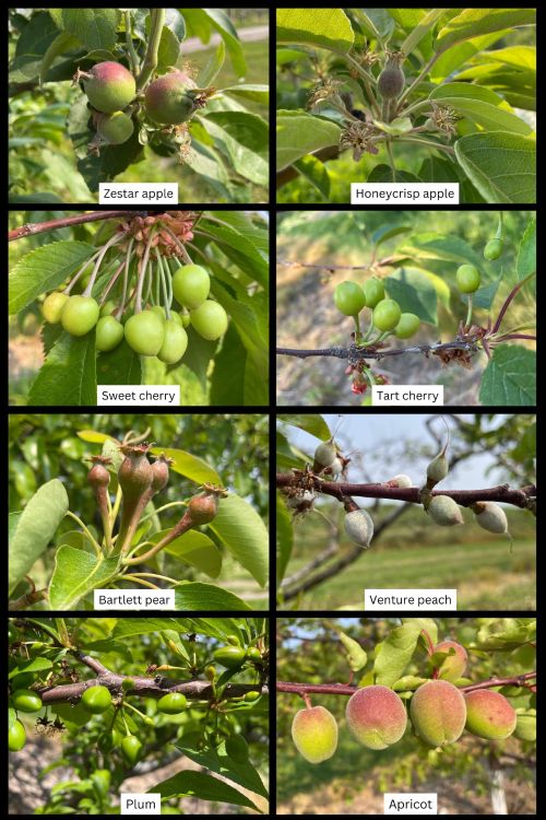 Fruitlets are growing steadily, about 0.5 to 1 millimeter (mm) per day. Tart cherry, sweet cherry and peach have set well in many orchards across the region. Apples and pears are sizing well, and some varieties, such as Gala, have a heavy set in many orchards (see Figure 1).