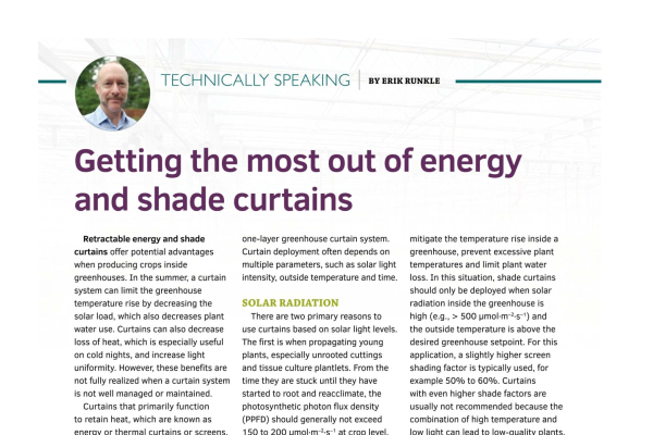 Blanchard, M.G., E.S. Runkle, A.-J. Both, and H. Shimizu. 2012. Greenhouse energy curtains influence shoot-tip temperature of New Guinea impatiens. HortScience 47:483-488.