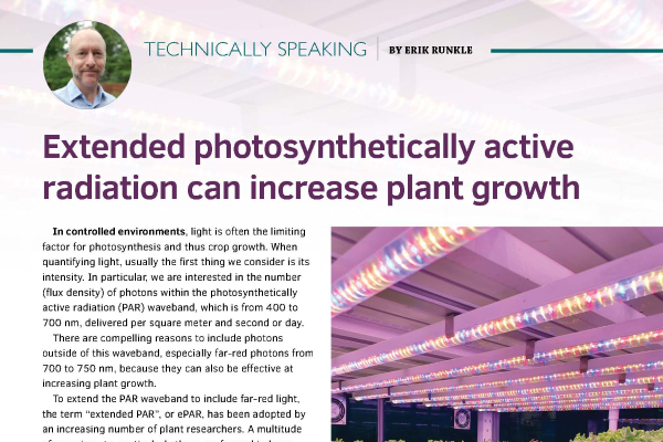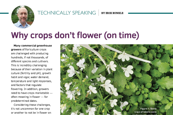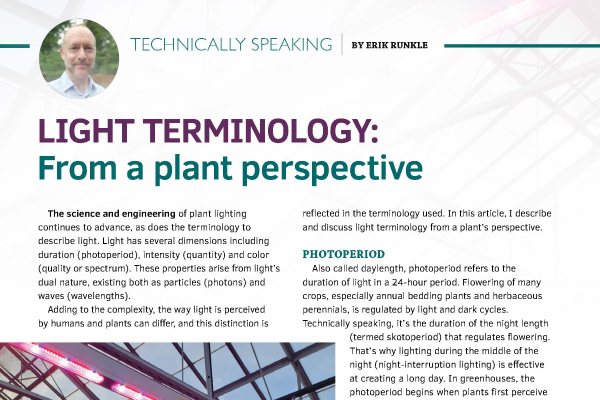 Kohyama, F., C. Whitman, and E.S. Runkle. 2014. Comparing flowering responses of long-day plants under incandescent and two commercial light-emitting diode lamps. HortTechnology 24:490-495.