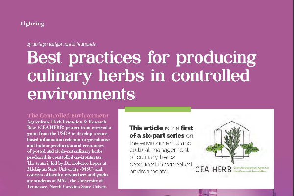 Zhang, M. 2018. Manipulating light quality to improve growth attributes of high-value specialty crops in controlled environments. MS thesis, Dept. of Hort., Mich. State Univ., East Lansing, MI.