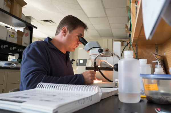 The ongoing research being conducted in Benbow’s lab centers on the applied ecology of insect–microbial interactions within three systems: carrion decomposition (and forensics), aquatic ecological networks and disease systems. The lab’s research revolves around three general questions: 1) Is insect fitness influenced by the community of microbes living in or on them?; 2) What are the ecological interactions of insects with the microbial communities associated with their habitat or food resources?; and 3) How can this information be used to inform resource management, human health and well being? The lab seeks to answer these insect-microbe questions for translation into human health applications.