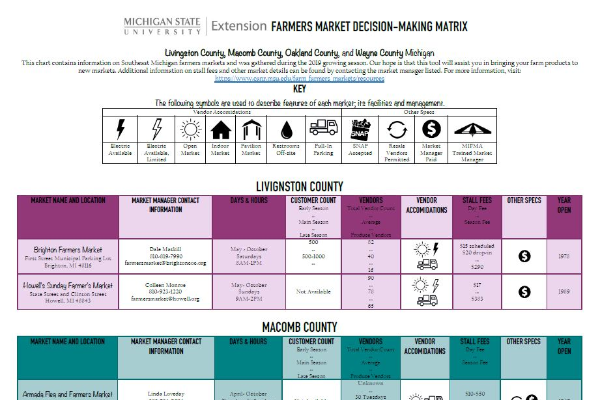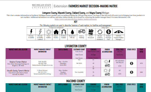 Metro-Detroit Farmers Markets – a Decision-Making Tool for Market Farmers in Southeast Michigan