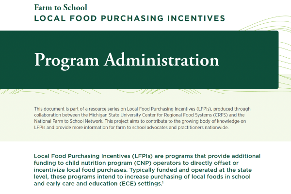 Farm to School Local Food Purchasing Incentives: Program Administration