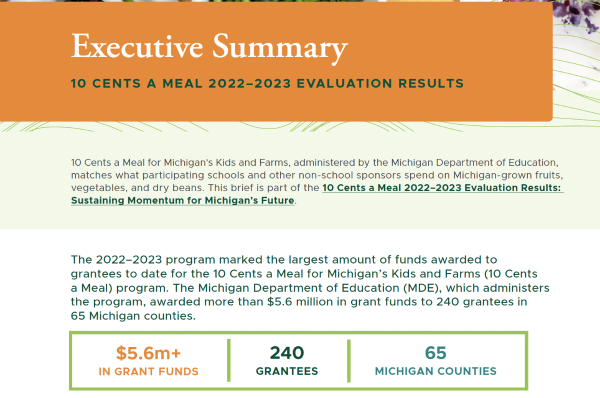 Sustaining Momentum for Michigan's Future: 10 Cents a Meal 2022–2023 Evaluation Results