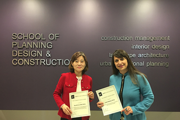 Suk-Kyung Kim is an associate professor interior design at SPDC. She received her PhD in Architecture from Texas A&M University (TAMU), her Master of Science and BS degrees in Housing and Interior Design from Yonsei University in Seoul, Korea. Kim also achieved the Certificate in Health System and Design from the TAMU College of Architecture. She is teaching various Contemporary Design Issues (IDES 440), Green Building and Housing (IDES 458), and Interior Design Programming (IDES 442) that includes evidence-based design, design research and space planning contents. Kim’s research topics for funded research and publications include environmental behaviors and perceptions, green and affordable housing for low-income people, occupant satisfaction in green healthcare facilities, supportive design theory and its implications, New Urbanism and building design implications, accessibility and sustainability assessment of Michigan park buildings, and design for the elderly. Currently, she is involved in two federally funded research projects. The first is for creating taxonomies of MI housing types and determining dominant archetypes that can be the major targets of future energy-efficient retrofit activities in these regions. The second is titled, “A Regional Affordable Housing Study” which was funded by the U.S. Department of Housing and Urban Development. This project is to analyze current housing stock in the Tri-County Region (Clinton, Eaton and Ingham counties in MI) through census data, housing expert and urban planner interviews, and resident surveys. Kim is an active board member of several scholarly journals, including the Journal of Architectural and Planning Research (board of editors), Housing and Society(publication committee chair), and the Journal of Korea Housing Association (editorial advisory committee member).
