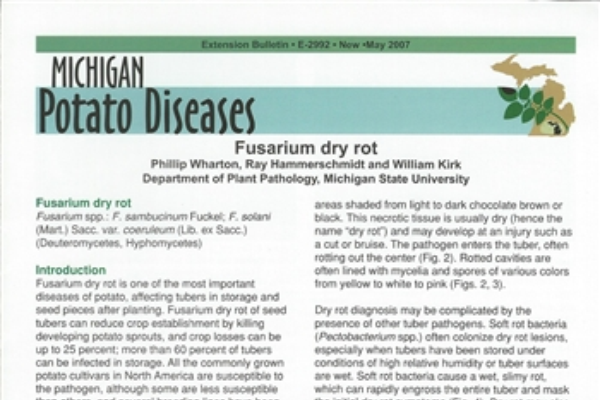- Gachango, E., Hanson, L.E., Rojas, A., Hao, J.J., and Kirk,W.W. Fusarium spp. 2012. Causing dry rot of seed potato tubers in Michigan and their sensitivity to fungicides. Plant Disease 96: 1767-1774.