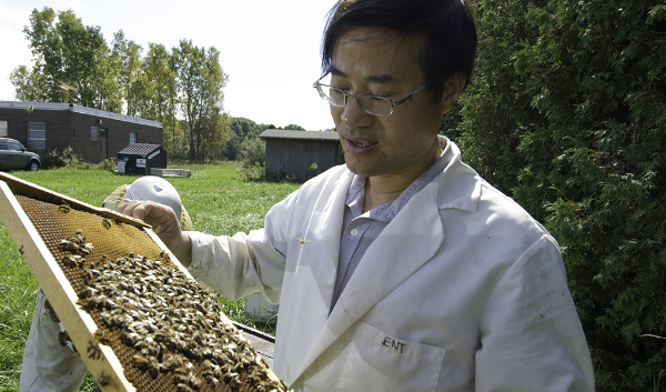 Huang studies how various stresses affect honey bees, including parasites, pathogens, insecticides, temperature, and transportation. His research over the past 20 years has focused on the reproductive biology of Varroa destructor and the fungal pathogen Nosema ceranae. His lab has examined why varroa mites prefer younger worker bees under realistic colony conditions, extending prior studies that relied on Petri dishes and cages. With Nosema ceranae, his team has shown that infection methods can influence worker mortality and that mixed infections with N. ceranae and N. apis are more deadly, both in cage studies and colony settings. Current research investigates whether immune priming with inactivated Nosema spores can protect honey bees.