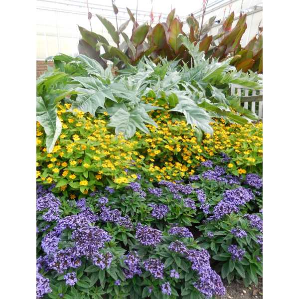 In addition to the trial beds, about half of the annual garden beds are planted as displays for enjoyment by our many wedding ceremonies and receptions, and by the general public. Our garden also features several beds and containers designed by student interns. These students get to select their plant material, then design, install, and maintain their creation all season.
