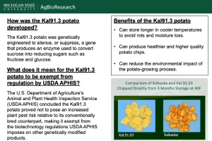 The Kal91.3 potato can be stored in cool temperatures for long periods of time and produce healthier and higher-quality potato chips. -