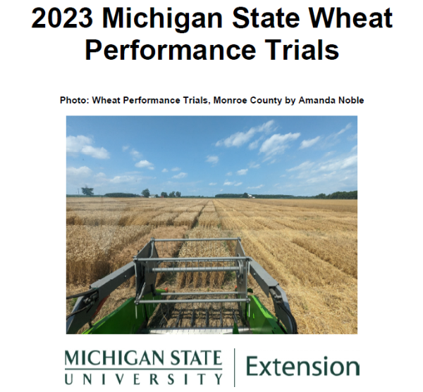 The 2023 State Wheat Performance Trial entries were planted in seven counties: Isabella, Hillman, Ingham, Huron, Montcalm, Sanilac and Tuscola.