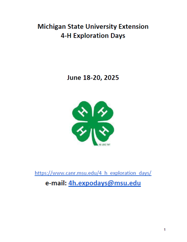 This document details the Michigan 4-H Code of Conduct as well as all of the policies and procedures for 4-H Exploration Days.