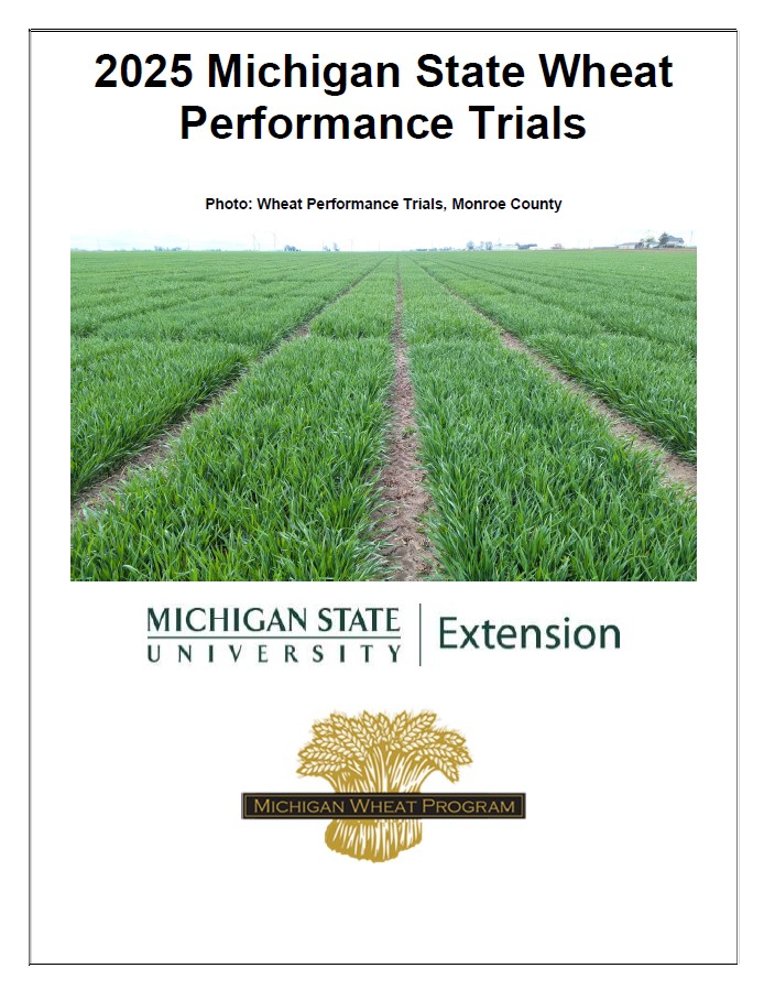 The 2025 Michigan State Wheat Performance Trials evaluated winter wheat across seven counties, focusing on yield, disease resistance, and quality. Planting in fall 2024 was mostly timely, though dry conditions delayed some sowing. Favorable overwintering conditions, aided by snow cover, supported crop survival despite arctic cold snaps. However, early snowstorms led to snow mold damage in some fields.