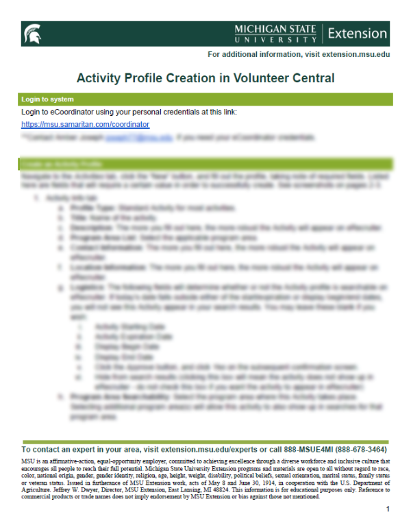 Activity Profile Creation in Volunteer Central