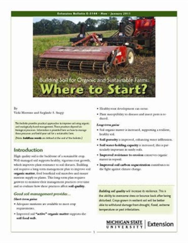 Support is available as you develop a soil management plan for your farm, including the technical information provided in the resource list below. The U.S. Department of Agriculture NRCS offers cost-share assistance for actions that lead to improved soil quality and provides guidance to create a plan to manage nutrients and reduce runoff. (To learn about a conservation soil conversation plan, visit www.nrcs.usda.gov/technical/afo/pdf/CNMP FactSheet.pdf. For information on cost-share programs available in Michigan, go to www.mi.nrcs.usda.gov/ programs/).