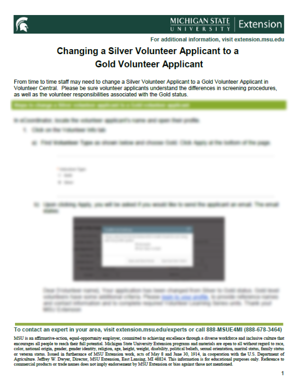 Changing a Silver Volunteer Applicant to a Gold Volunteer Applicant