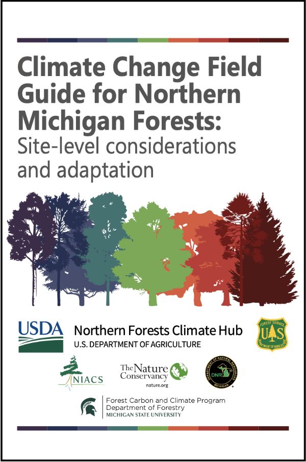 Climate change is a growing concern for Michigan’s forests. Foresters and land managers are considering how to prepare for future conditions and evaluate risks. This field guide is a quick reference on climate change for northern Michigan forests. We hope it will help you consider climate change risks together with local site characteristics, and also that it will help you design adaptation actions that help meet management goals.