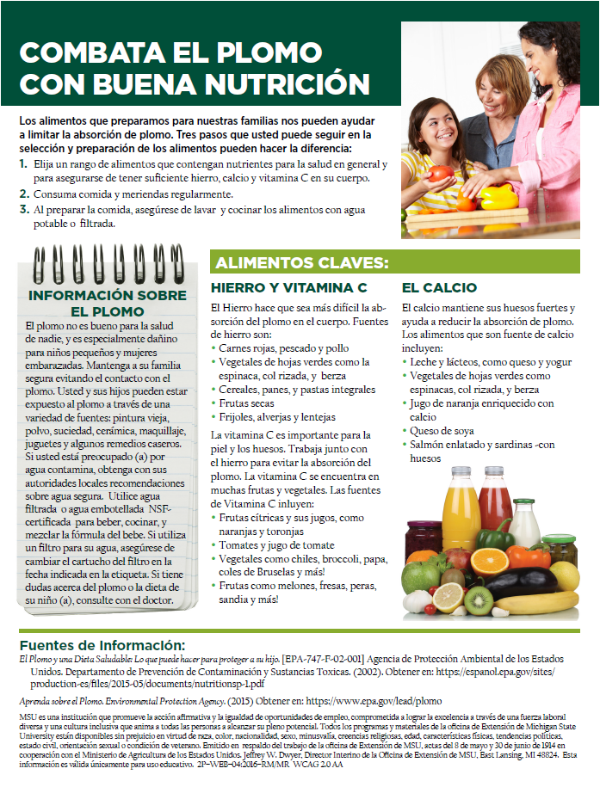 Los alimentos que preparamos para nuestras familias nos pueden ayudar a limitar la absorción de plomo. Tres pasos que usted puede seguir en la selección y preparación de los alimentos pueden hacer la diferencia: