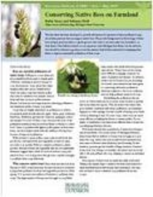 Bees are the primary pollinators of many important agricultural crops. Honey bees provide the majority of pollination services on most farms, but native bees can provide an important component of a sustainable pollination strategy. Most agricultural landscapes have resident populations of native bees, though their abundance may be low because of intensive farming methods that minimize availability of suitable nesting and feeding sites. Growers can adopt some relatively simple practices in and around their fields to enhance farm suitability for these important beneficial insects: