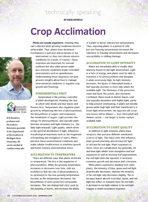 Plants perceive and acclimate to the environment to tolerate adverse conditions. Understanding these responses can provide insights about how to manage the environment to regulate crop growth and flowering.