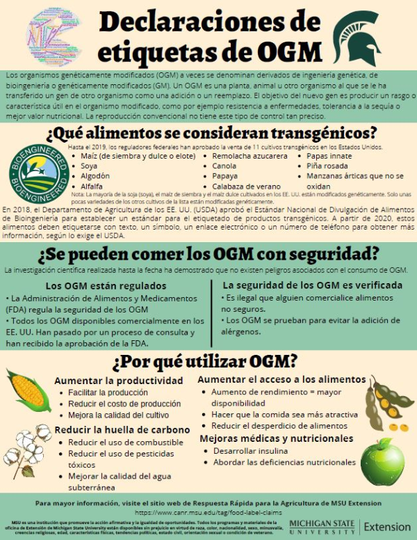 En 2018, el Departamento de Agricultura de los EE. UU. (USDA) aprobó el Estándar Nacional de Divulgación de Alimentos de Bioingeniería para establecer un estándar para el etiquetado de productos transgénicos. A partir de 2020, estos alimentos deben etiquetarse con texto, un símbolo, un enlace electrónico o un número de teléfono para obtener más información, según lo exige el USDA.