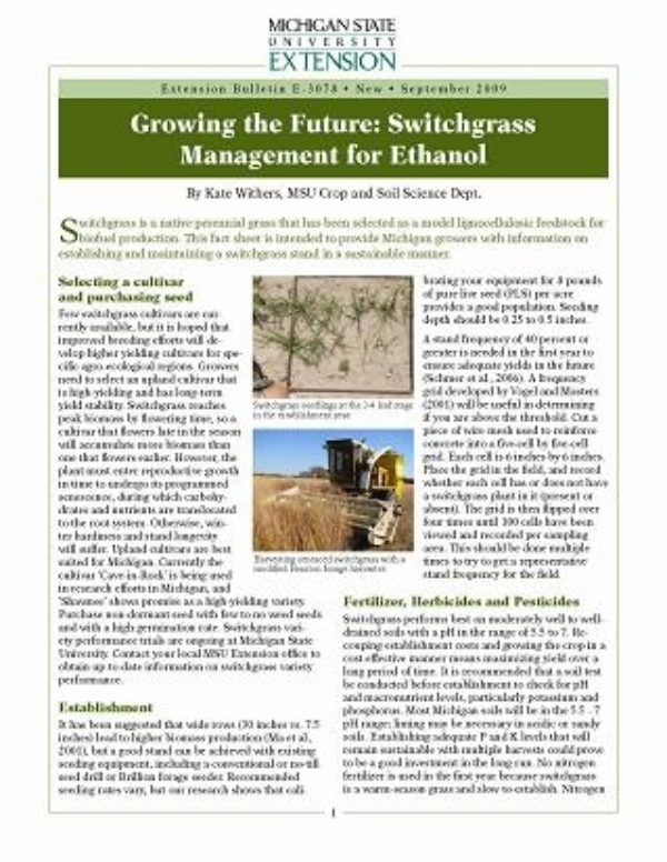 Bughrara, S., R. Leep, D. Min, D. Hudson and T. Dietz. 2007. Switchgrass as a Biofuel for Michigan. MSU Extension Bulletin E-2987.