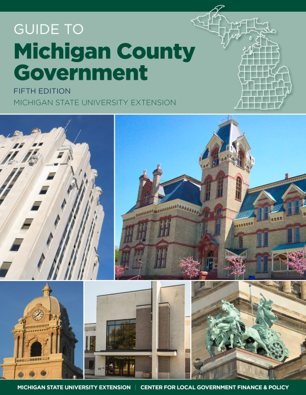 Revised and updated by public policy experts with Michigan State University Extension, the fifth edition of the Guide to Michigan County Government discusses state laws governing county governments; counties’ policies, procedures, and limitations; and the history of county governments in the U.S. and Michigan. The Guide also explains practical aspects of Michigan’s county governments, such as how they’re structured and how they function; the services they provide; their relationships with law enforcement and the courts; and county commissioners’ roles as administrators, legislators, budgeters, and planners.