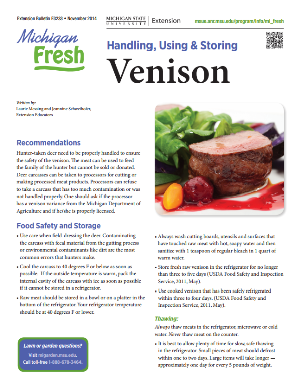 Also learn about handling, using and storing venison from the Michigan Fresh fact sheet.