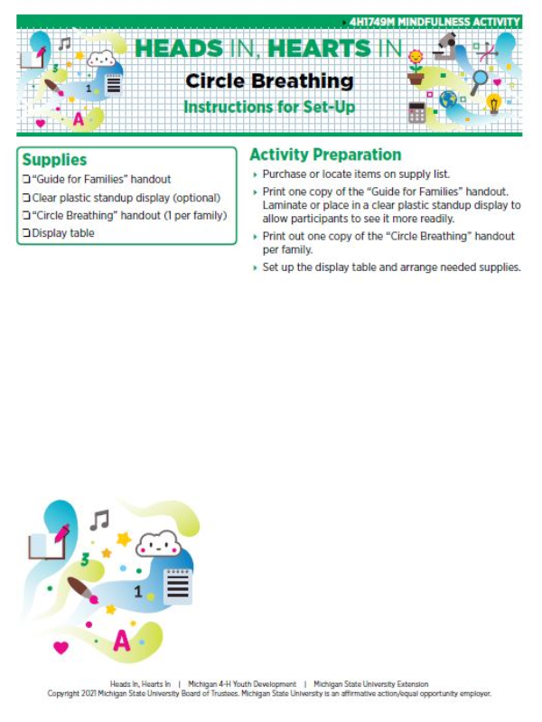 In this activity, you will use the “Circle Breathing” handout to learn a technique for connecting breathing to visual and hands-on learning.