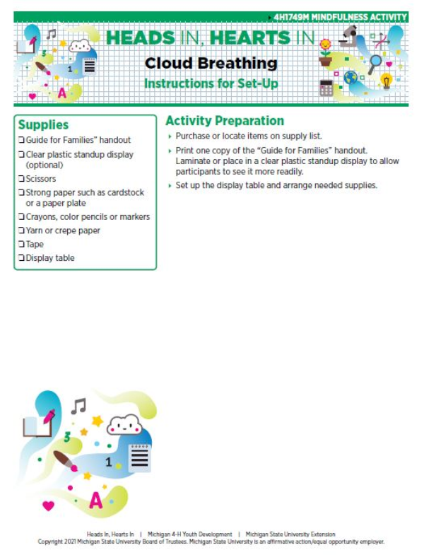 In this activity, you will use your breath to explore fast and slow breathing, as well as breathing through your nose and mouth. This activity will teach you to “see” the breaths you take.
