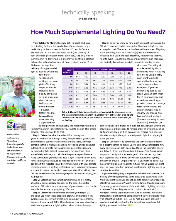 Several factors need to be considered when choosing a supplemental lighting system, and arguably the most important one is to determine what light intensity you want to deliver. This article provides steps on how to do that.