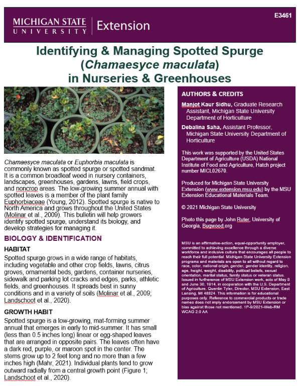 Identifying & Managing Spotted Spurge (Chamaesyce maculata) in Nurseries & Greenhouses