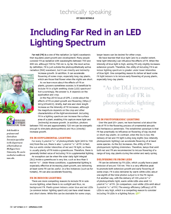 Growers sometimes wonder whether it is beneficial to include far-red radiation in a light-emitting diode (LED) spectrum. Not surprisingly, it depends on the application and crop.