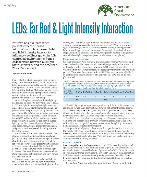 Part 2 of a 5-part series explains how far-red light and light intensity (the photosynthetic photon flux density) interact to influence growth of young plants indoors, under fully controlled environments.