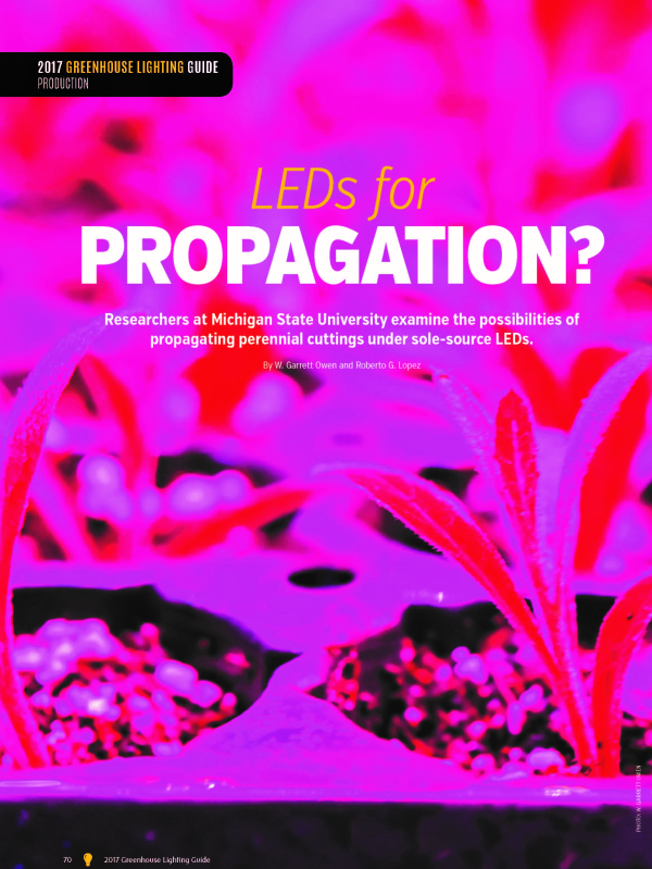 Researchers at Michigan State University examine the possibilities of propagating perennial cuttings under sole-source LEDs.