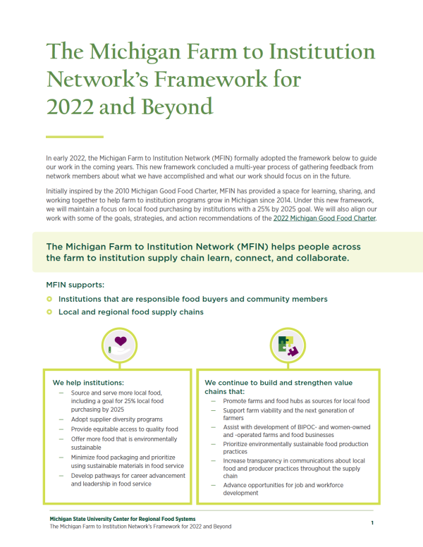 The Michigan Farm to Institution Network's Framework for 2022 and Beyond