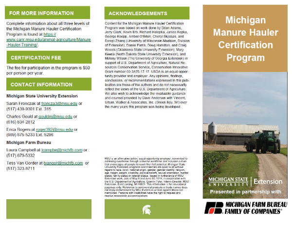 Michigan Manure Hauler Certification Program Brochure