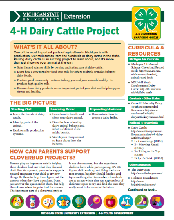 Michigan 4-H Cloverbud Snapshot Sheet: 4-H Dairy Cattle Project (4H1723)