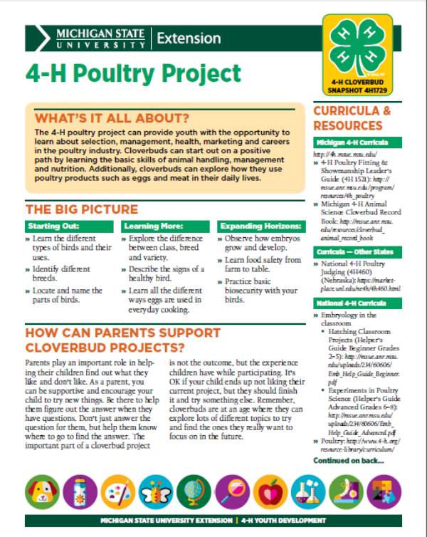 Michigan 4-H Cloverbud Snapshot Sheet: 4-H Poultry Project (4H1729)