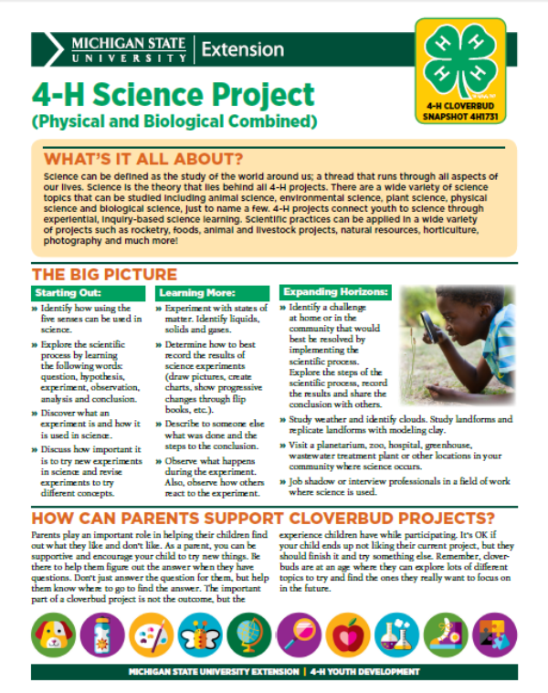 Michigan 4-H Cloverbud Snapshot Sheet: 4-H Science Project - Physical & Biological Combined (4H1731)