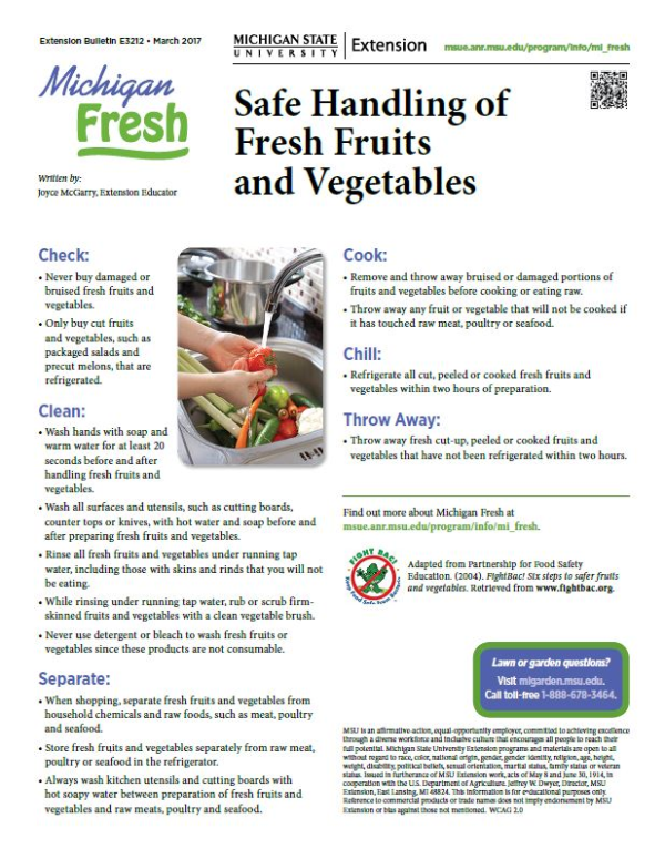 Learn to check, clean, separate, cook, chill and throw away your fruits and vegetables properly. This fact sheet is based on the FightBac! steps to safer fruits and vegetables from the Partnership for Food Safety Education.
