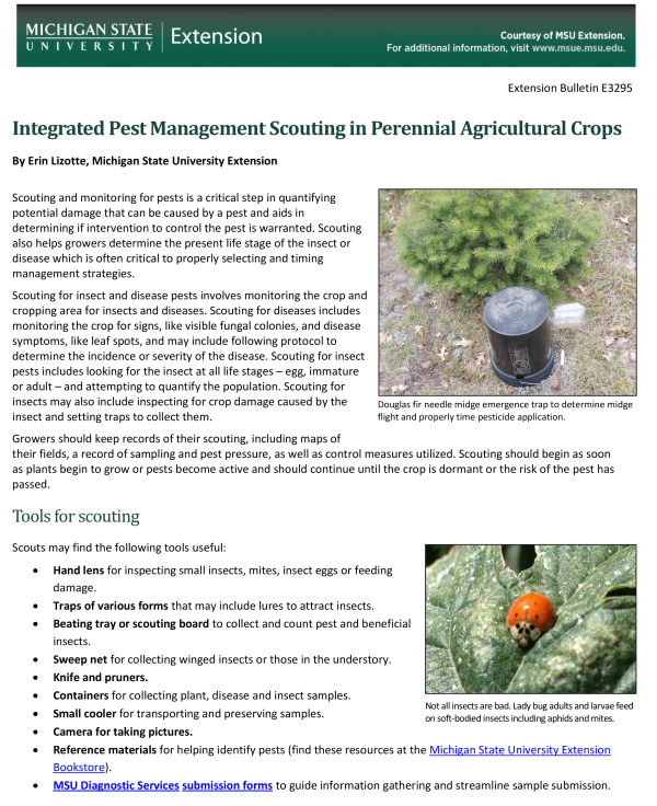 For more information on integrated pest management of perennial agriculture crops and other production topics, subscribe to the MSU Extension newsletters that interest you.