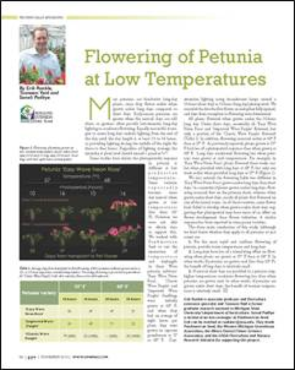 Temperature and photoperiod interact to influence flowering of petunia. This article presents research-based information to better understand how to manipulate the environment for rapid flowering.