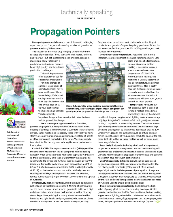 Propagating ornamental crops is one of the most challenging aspects of production, yet an increasing number of greenhouse growers are doing it themselves. This article provides a brief overview of tips for successful propagation.