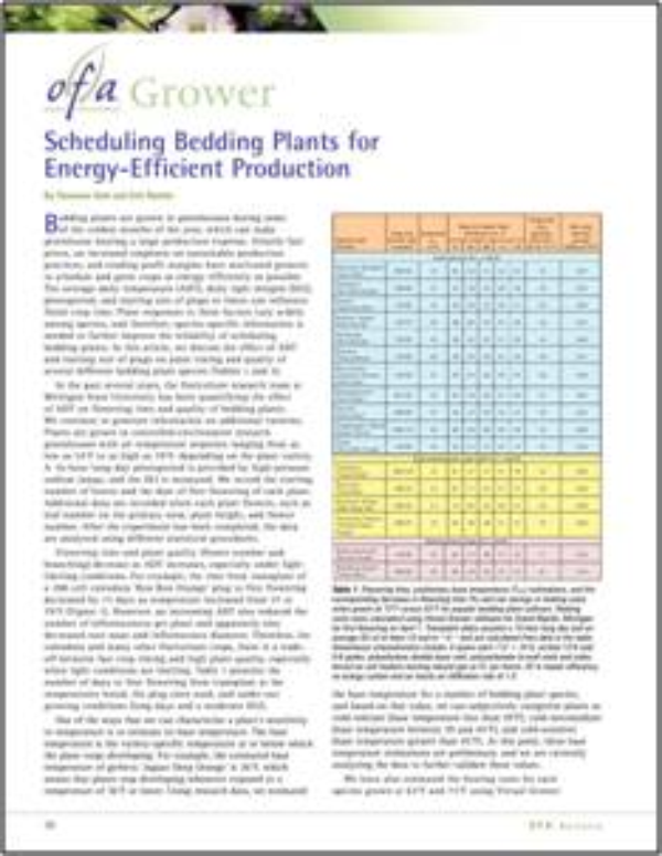 In this article, we discuss the effects of average daily temperature and starting size of plugs on flowering time and crop quality of a variety of annual bedding plants.